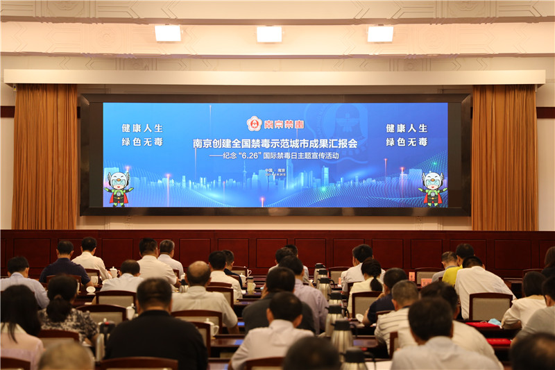 6月26日下午,南京市召开创建全国禁毒示范城市成果汇报会。市委常委、政法委书记徐锦辉出席并为禁毒工作示范点授牌。江苏省公安厅党委委员、副厅长,南京市副市长、市公安局党委书记、局长常和平出席并致辞。市政府副秘书长、禁毒委副主任韦建平,市禁毒委副主任兼市禁毒办主任,市公安局党委委员曹存福出席。市禁毒委副主任,各成员单位分管领导,市公安局有关部门、专业分局负责人,各区禁毒委、禁毒办主任,受表彰的先进集体和个人代表,禁毒工作示范点负责同志参加活动。