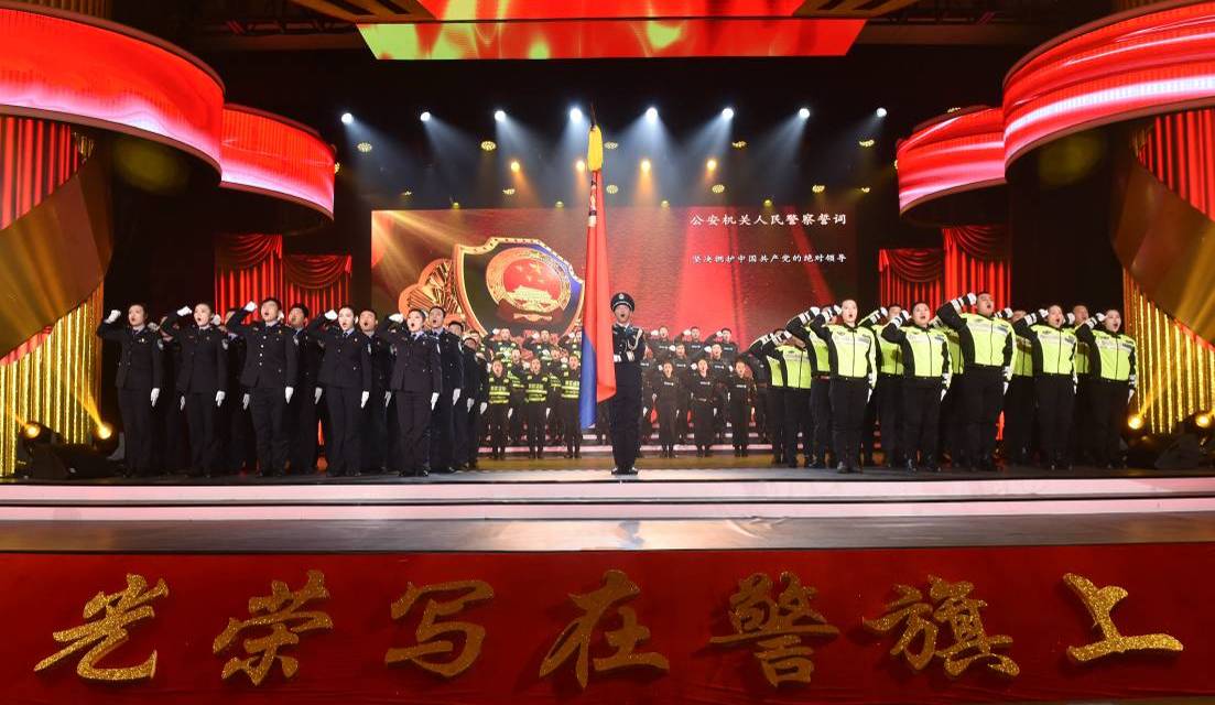 当天上午8时40分,市公安局在机关大院举行升警旗仪式。升旗仪式后,功模民警吕宏伟带领全体民警重温了入警誓词。