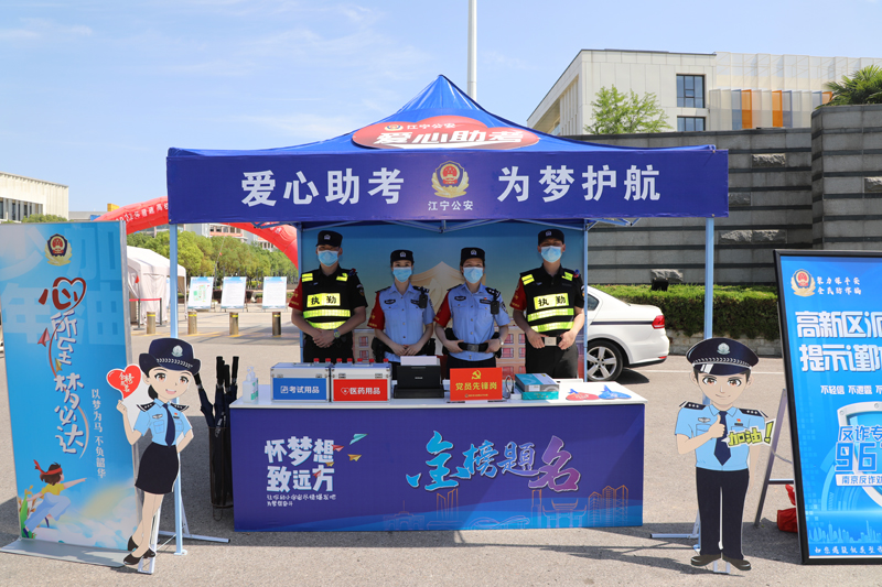 高考期间,南京公安推出爱心护考“四个一”举措,全市12个考区、28个考点均设立一个公安考点服务站、一个临时身份证制证点,常驻一台武装护考巡逻车、一辆爱心保障应急铁骑,为广大考生提供优质高效的警务服务。