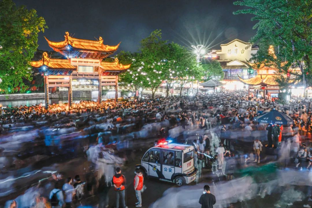 节日期间,夫子庙景区高峰期一天的客流量接近最大承载量。在预约入园的保障基础上,秦淮公安分局每日安排800名警力开展安保守护,通过设置高位站台单兵岗、分流人墙、单向通行等举措,让警察看到群众、让群众看到警察。第十届咪豆音乐节在溧水天生桥景区举办,8万名游客现场观看。溧水公安分局每日投入千余名安保力量开展秩序维护、治安巡逻、交通疏导、游客帮扶等工作,为广大乐迷和游客提供安全的游园环境。在六合金牛湖野生动物王国、冶山花海等重点景区景点,六合公安分局落实“一景区、一方案、一领导、一专班”,科学调配安保力量,维护景区现场秩序。