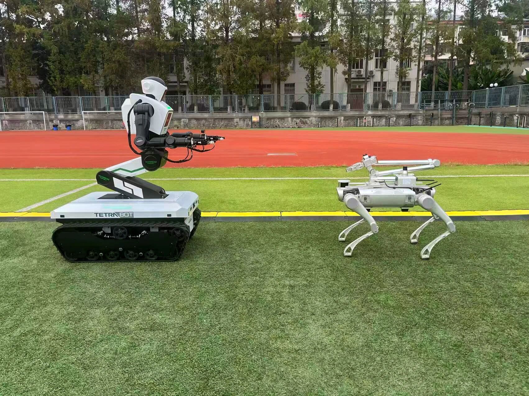 10月12日,在2025“把青春华章写在祖国大地上”大思政课网络主题宣传和互动引导活动现场——河海大学,这只“警犬”和它的搭档“天魁1号”防爆人形机器人组团参与安全检查工作。