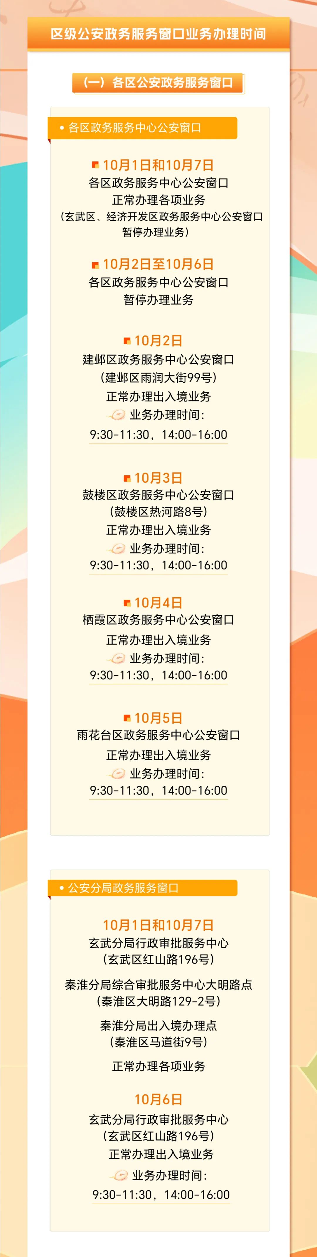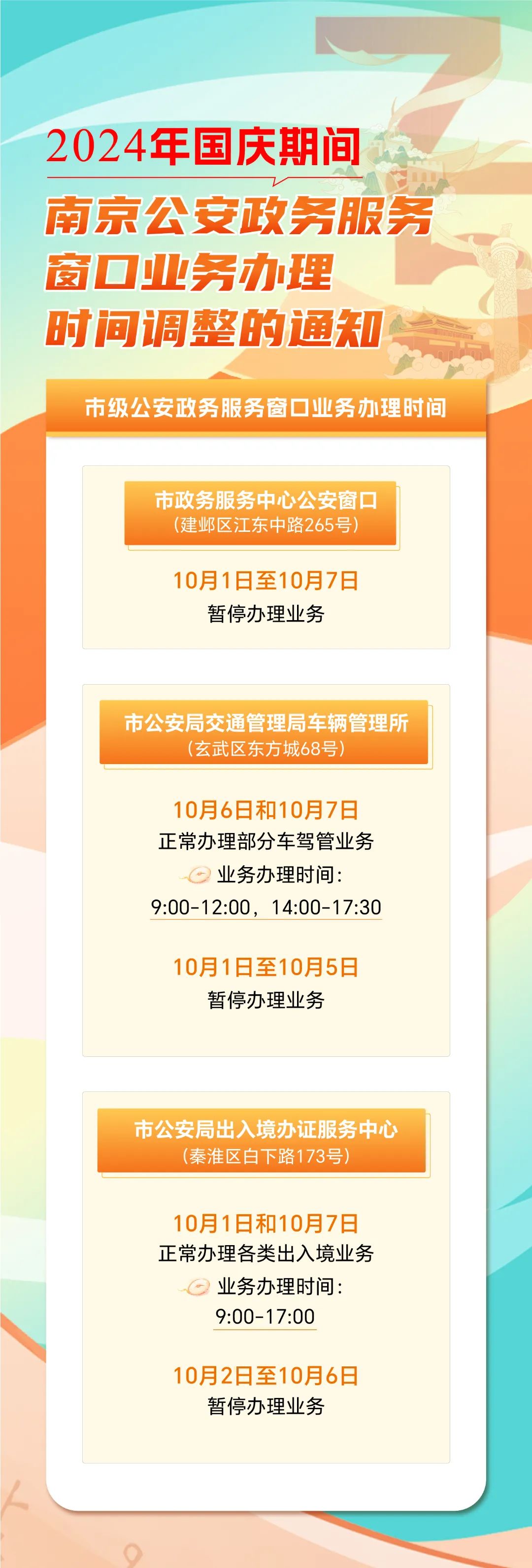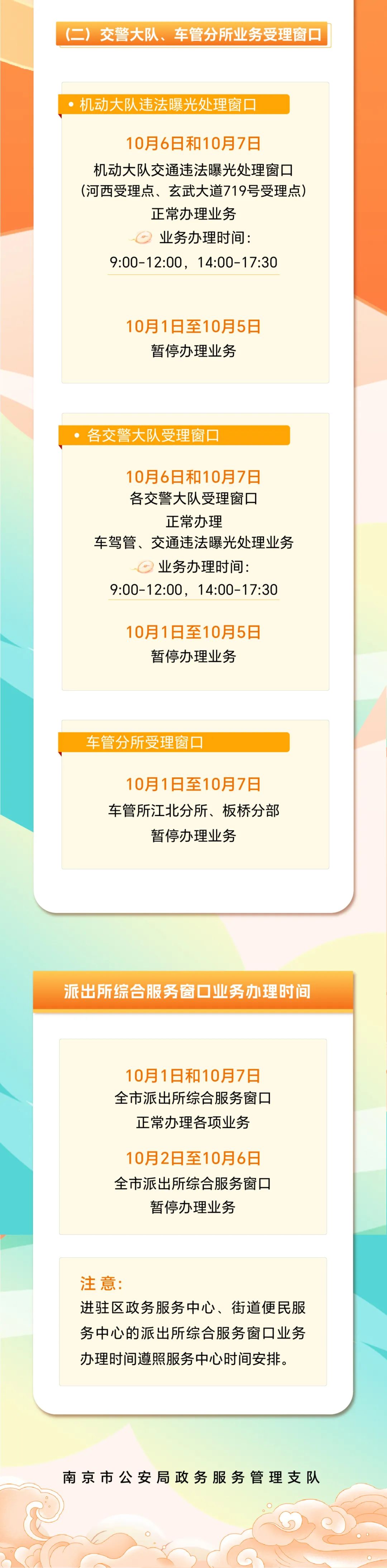 国庆期间南京公安政务服务窗口业务办理时间调整的通知