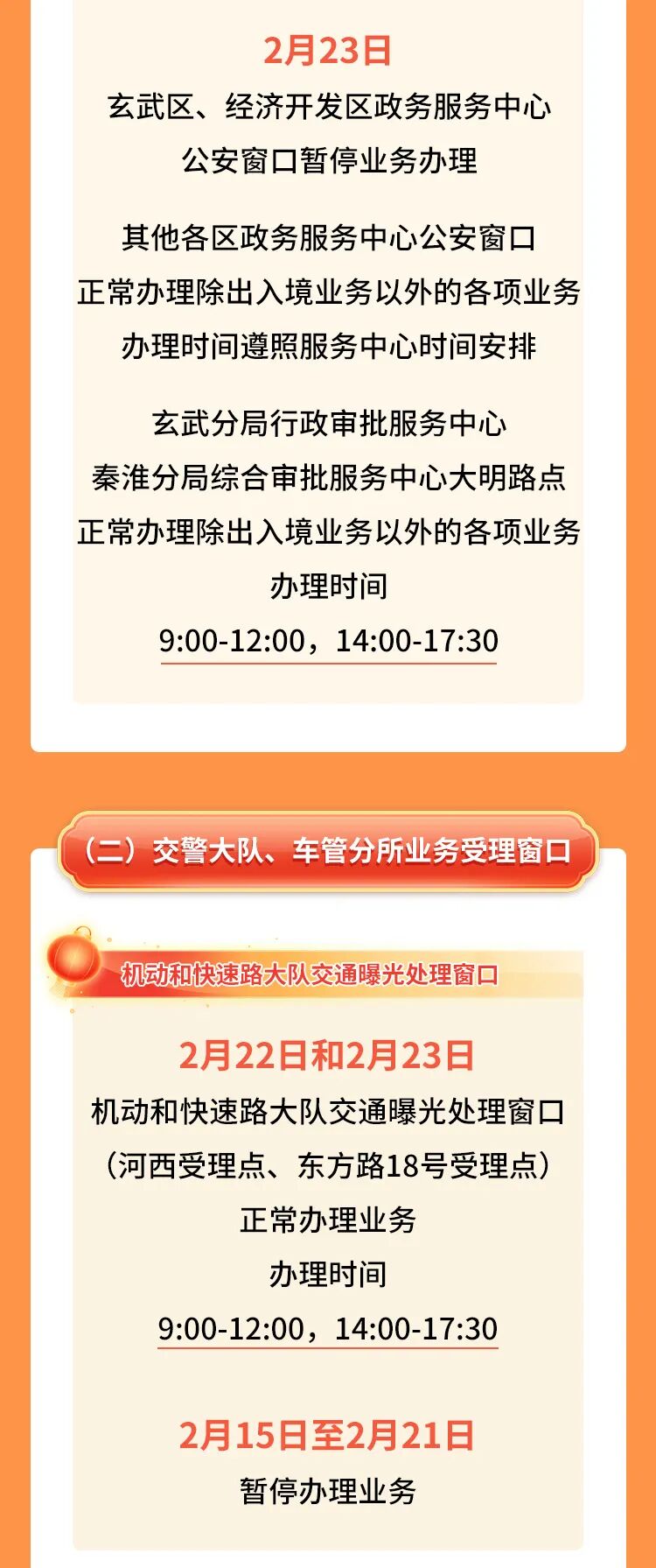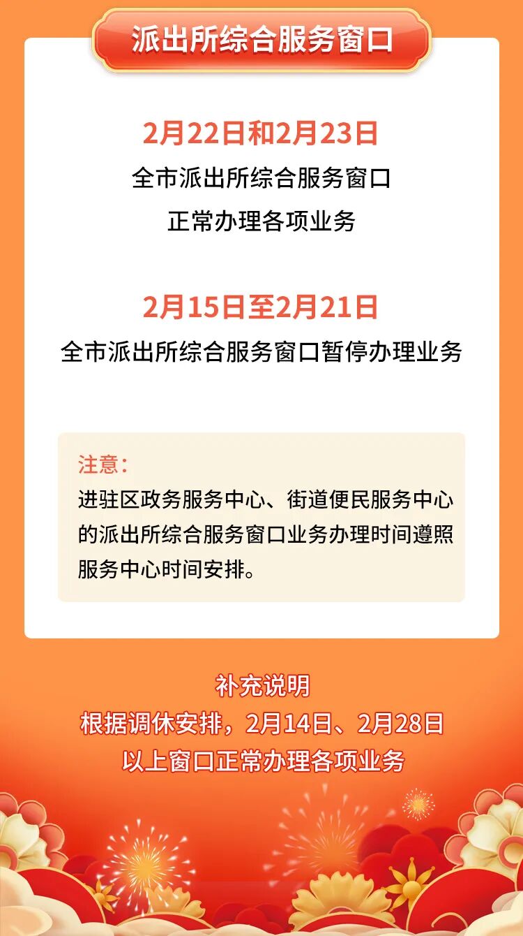 春节期间公安政务服务窗口业务办理时间调整的通知