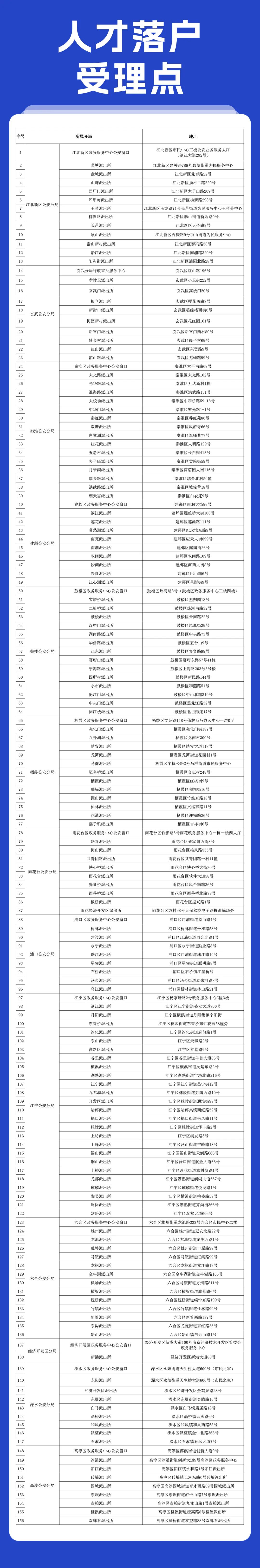 为进一步方便人才落户业务就近办理,7月1日起,南京公安将符合相关政策的人才落户事项,由三个受理点扩展至全市范围“全域通办”。