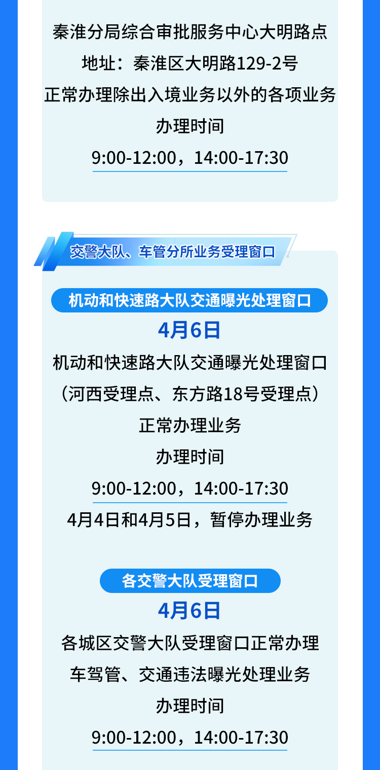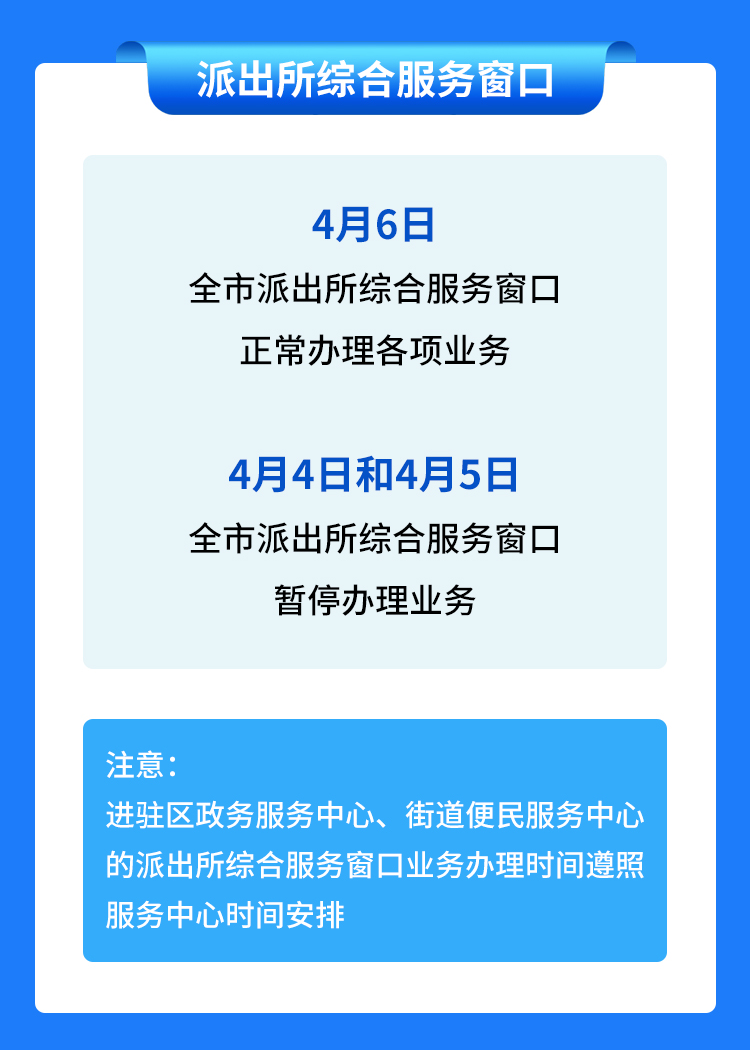 清明期间公安政务服务窗口业务办理时间调整的通知