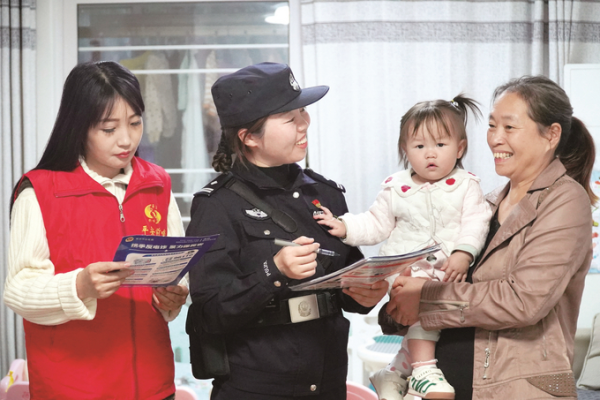 近日,鼓楼公安分局民警结合秋冬季治安特点,带领网格员开展入户走访,向市民宣传用火用电用气安全的同时,分发反诈宣传单,讲解电信网络安全防范知识,提高群众安全意识,营造全民反诈氛围。