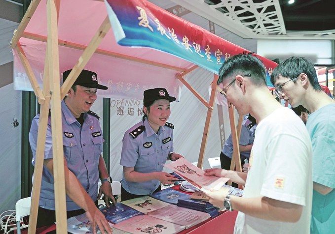 9月13日晚,南京市公安局建邺分局开展夏夜治安巡查宣防集中统一行动,民警向群众宣传防范经济犯罪和反诈提醒,增强全民安防意识,提高群众自我保护能力。